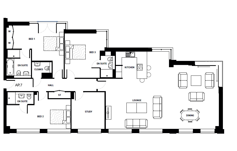 • Three Bedrooms plus study